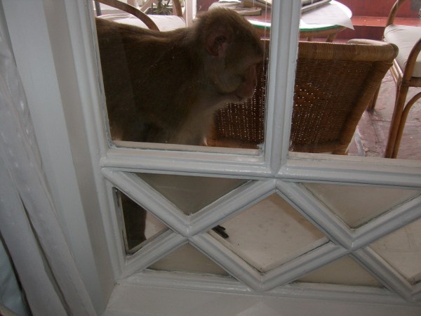 In India monkeys run around the backyard, jumping in trees, like squirrels do in New England. Anjula told me a story about when a pack of monkeys broke into their family house in Dehradun. The family dropped everything, scrambled together and ran up to the second floor because on the first floor the monkeys were wrecking havoc– throwing plates and making a mess in general.