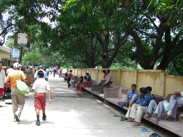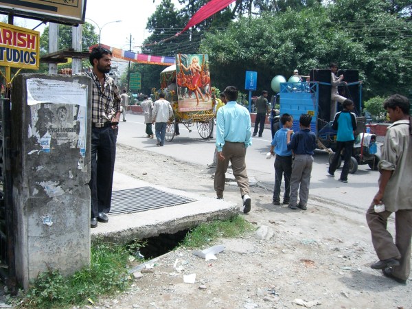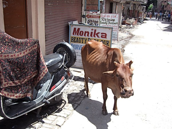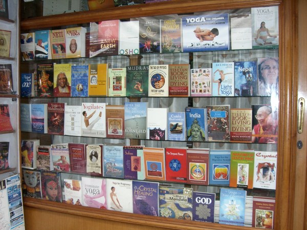 Which would you rather have parked in front of your beauty salon?The town was full of tourists, all from India. Because it was July, ( rainy and hot), I happened to be the only Westerner & the only blonde in town.Broken sidewalks are everywhere and are quite normal throughout India. No drain covers, so I imagine a child or dog could easily disappear down the sewer.People gather in groups. Some buying snacks from fry shop on the right.Health care? Many Indians practice Ayurvedic medicine, which requires knowledge of herbs, spices and food.Typical reading list for “western” visitors to Rishikesh.