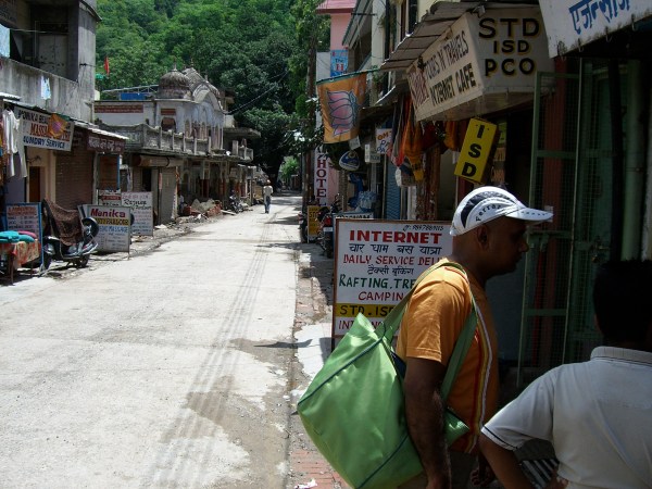 Rageev and Robyn exiting typical snack shop. Robyn wanted a Fanta.They were in Rishikesh helping me to find an ashram.Making inquiries.