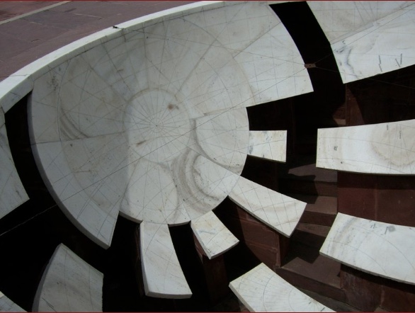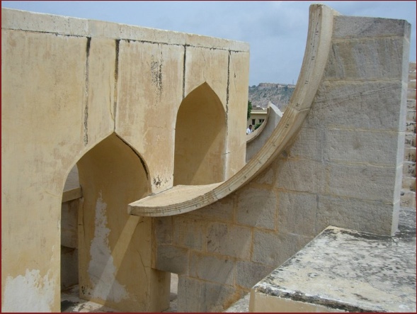 A huge sundial tells the time in Jaipur local time. It was quite amazing to watch time pass via a shadow; it moved a hand’s width every minute The Giant Sundial, known as the Samrat Yantra (The Supreme Instrument) is one of the world’s largest time measuring devices.