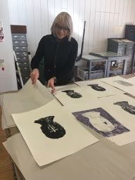 For the Silent. Silence. Silenced exhibit at Atlantic works, I showed a grouping of black & white monoprints of hooded heads that many gallery visitors said were fascinating. At the artist talk, one of the guests noted that the row of prints reminded her of Crusaders. It was a long haul through self-censorship for me to show the monoprints.