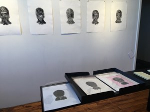 That was truly upsetting new for me. I dropped a black inked hood over the face of Nike; and I kept going. A portion of the monoprints, made when the artist was upset about a silenced woman, are on exhibit at SILENT. SILENCE. SILENCED. at Atlantic Works Gallery .