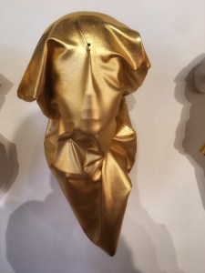 Consequently, as a way of working out my artistic dilemma, I made gold-hooded heads and called them “Silenced by Capitalism.” For some reason, I was sure the concept and the sculptures of